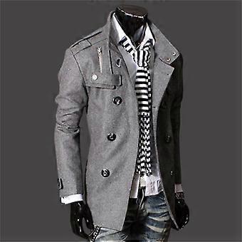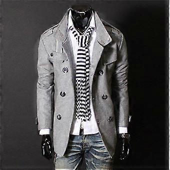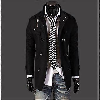 معطف رجالي طويل نحيف باللون الأسود بطبعة ياقة مزدوجة الصدر للربيع والخريف 2023