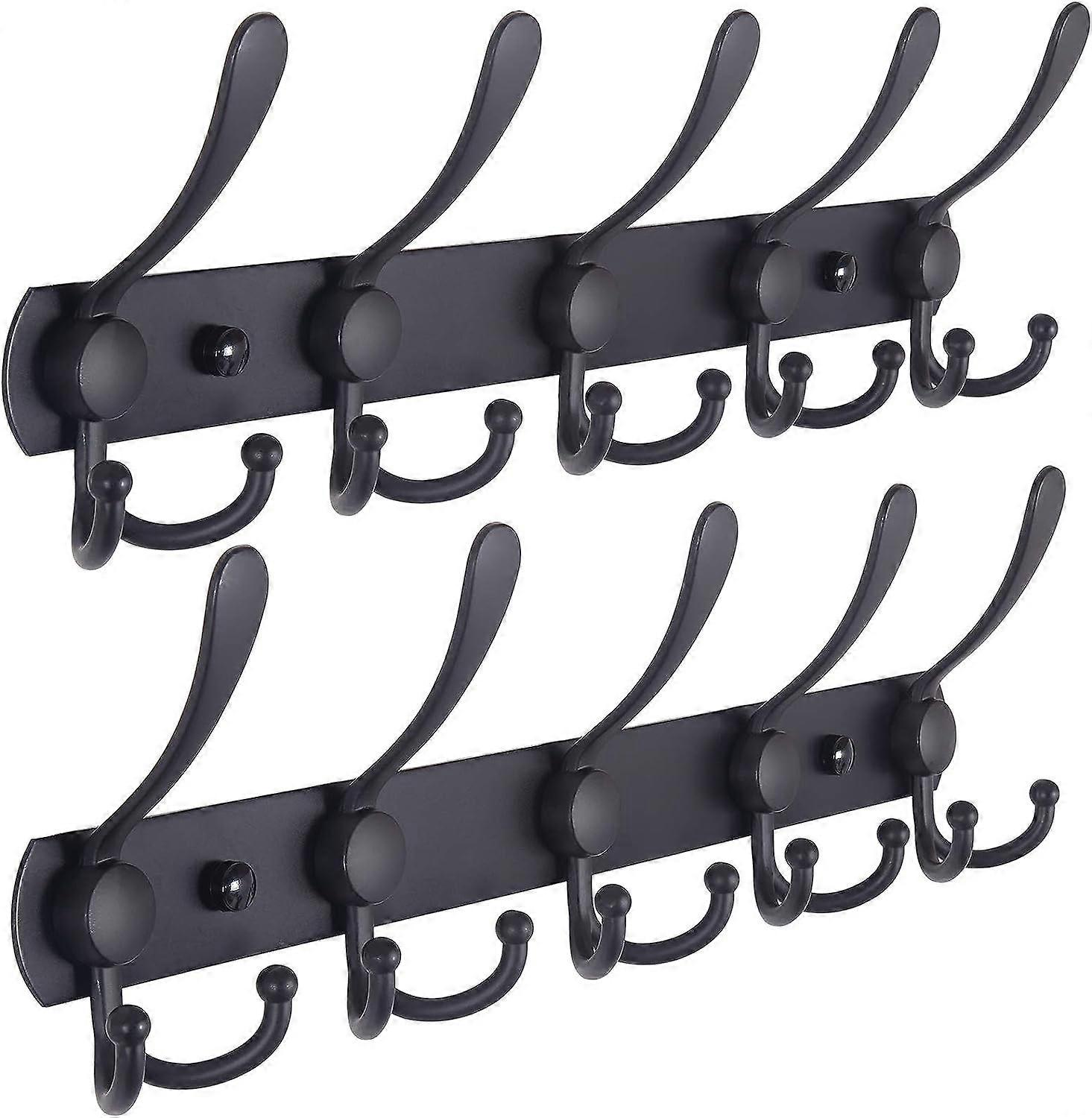 Coat rack wall mount-5 triple hooks, heavy duty, stainless steel, metal coat hook rails for coats, hats, towels, wallets, robes, bathroom entrance (bl