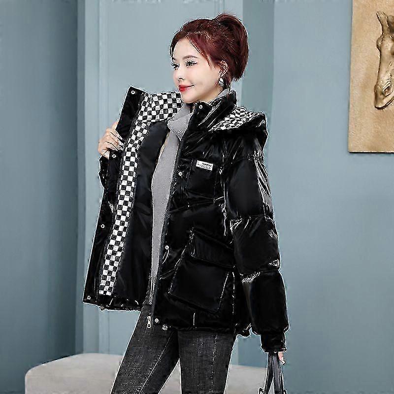 Women's Shiny Korean-style Short Cotton Coat, Winter Loose Thickened Hooded Down Cotton Jacket