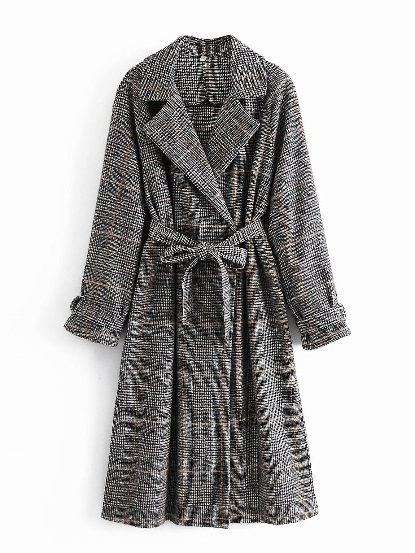 Women's Mid-Length Lapel Plaid Coat