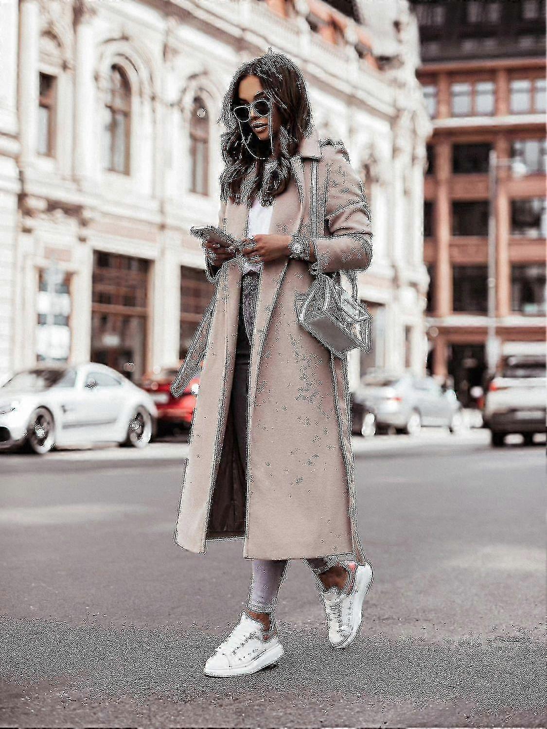 Womens Coat Winter Mid-length Warm Jackets With Belt Duffle Coat