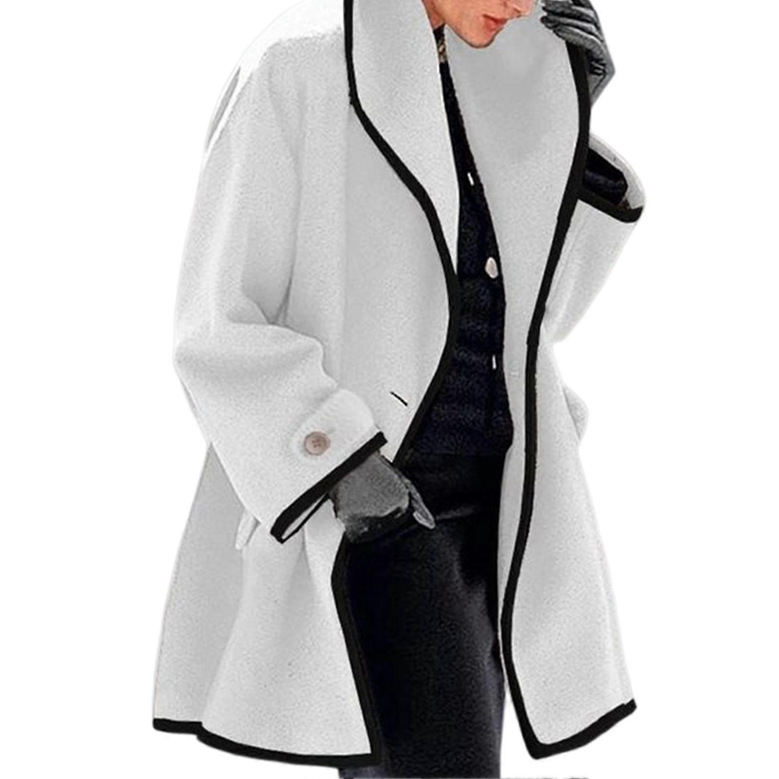 Women\'s Autumn Winter Woolen Coat Hooded Color Block Woolen Coat Long Sleeve Cardigan Trench Jacket