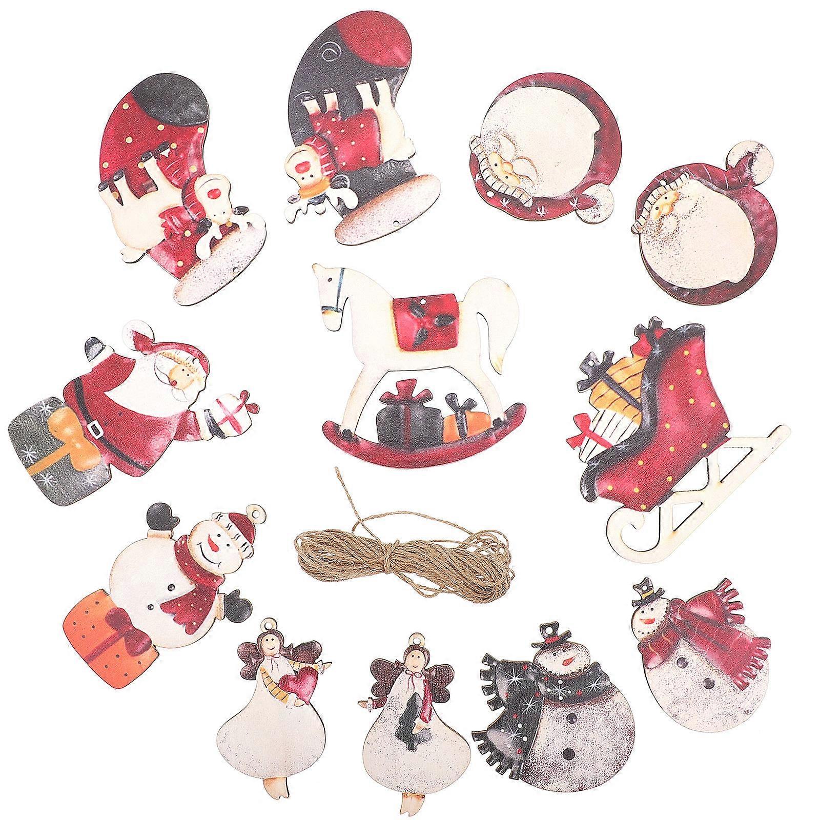 Mixed Charms Pendants 12Pcs Christmas Ornaments for Home Decoration Assorted Color Wooden Material Christmas Atmosphere Creator