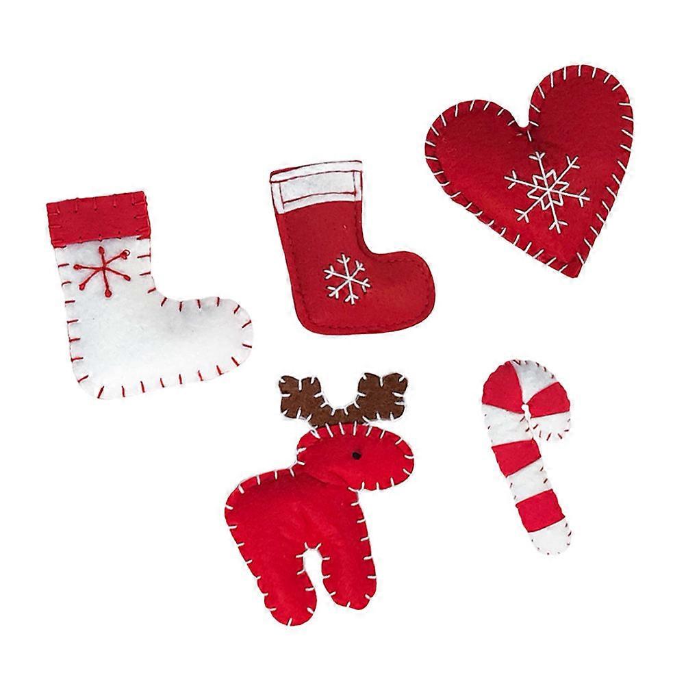 Hanging Ornament Xmas Felt Elk Pendant Store Decoration Christmas Party Scene Layout 9x8cm 5Pcs