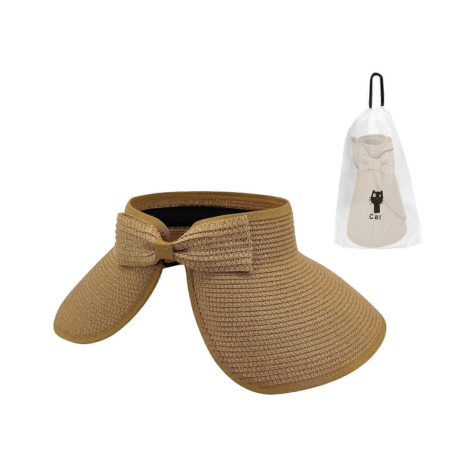 with Wide Brim Ladies Foldable Cap Ponytail Beach Hat with A Storage Bag(Khaki )