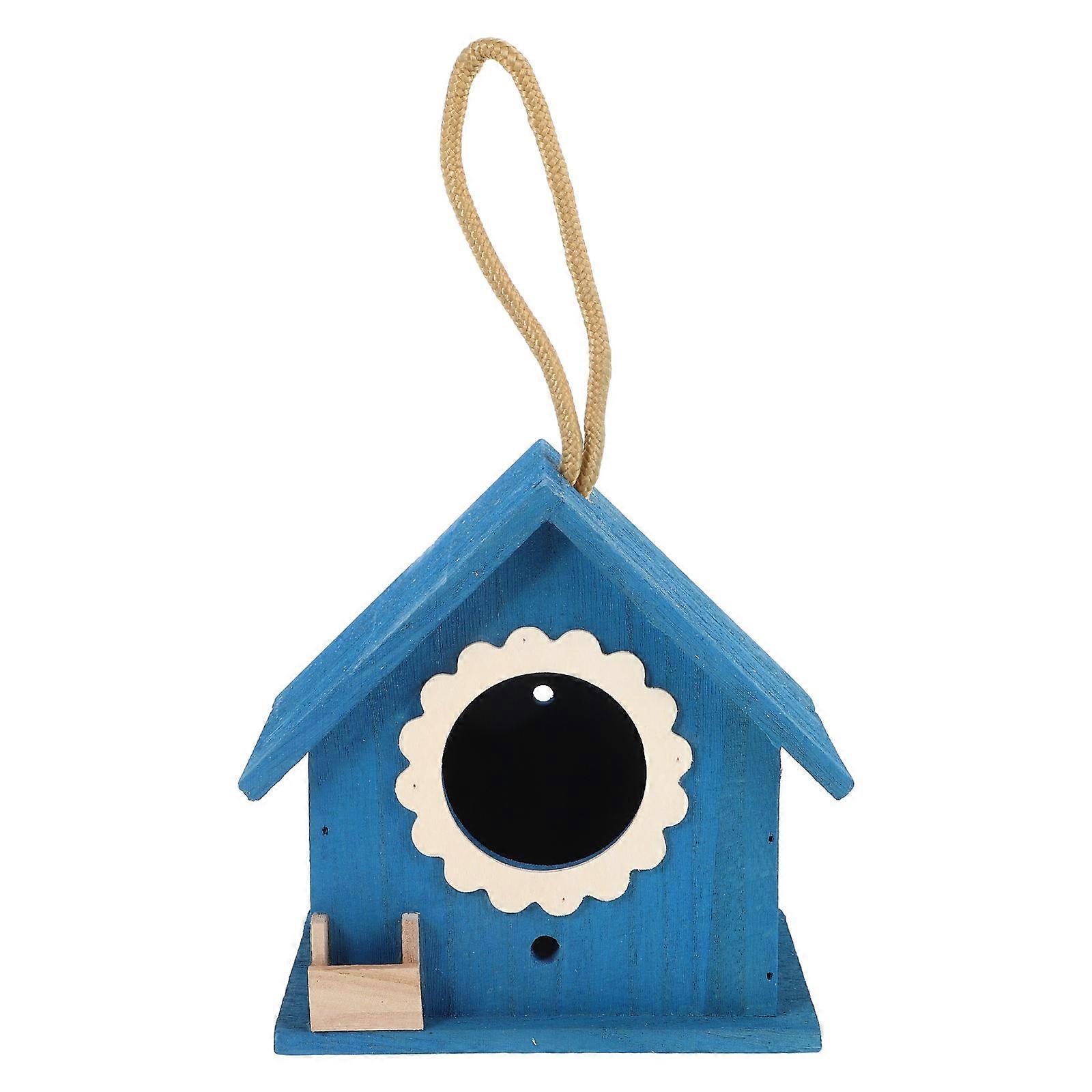 Hanging Bird Feeders Wooden Birdhouse Bird Nesting Home Decoration Blue 17.00X15.50X10.50CM Vivid Design 1Pcs