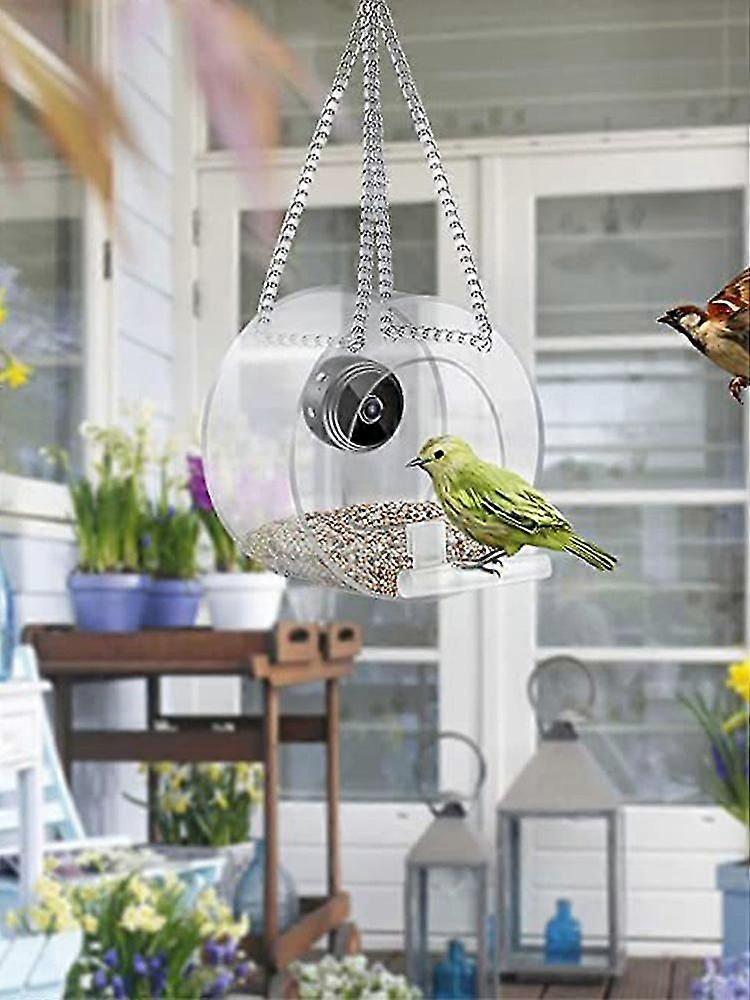 Hanging Bird Feeder With Camera, Outdoor Garden Decoration, White, Hd 1080p, Wifi Remote