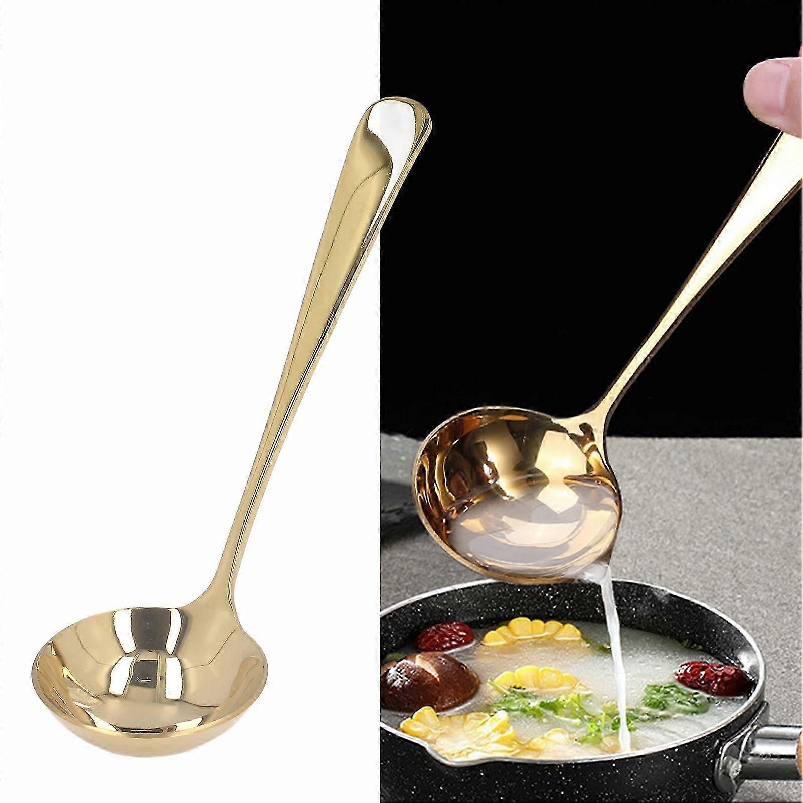 Stainless Steel Soup Ladle, Portable Long Handle Heat Resistance Soup Spoon Durable Soup Serving Spoon Ladles for Cooking, Sauces[Gold-2]