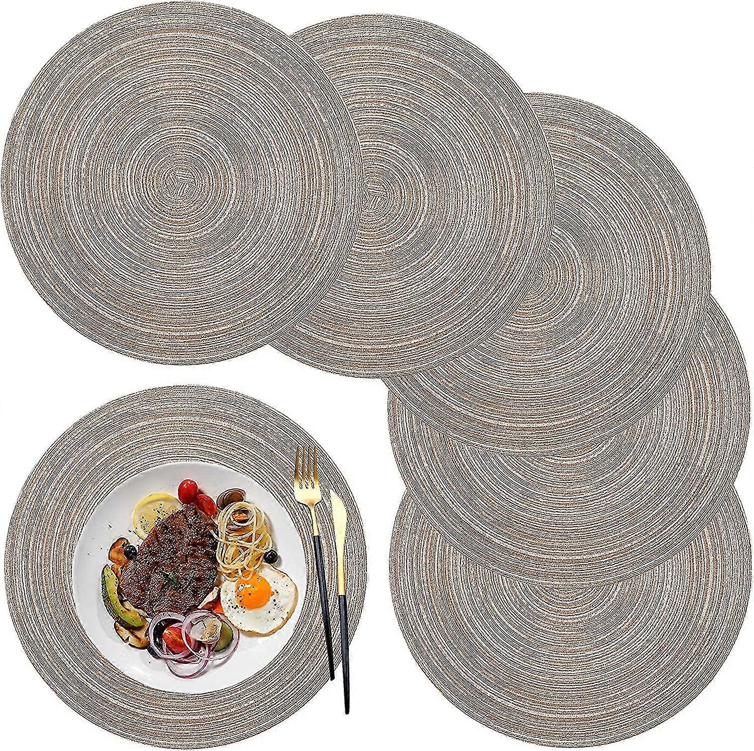 Placemats, Round Placemat Pp Braided Set Of 6 Washable Heat Resistant Non-slip, 36cm, Coffee Color
