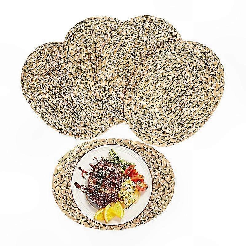 Natural Woven Oval Placemats, 12x16 Inch, Water Hyacinth and Rattan Braided Dining Table Mats