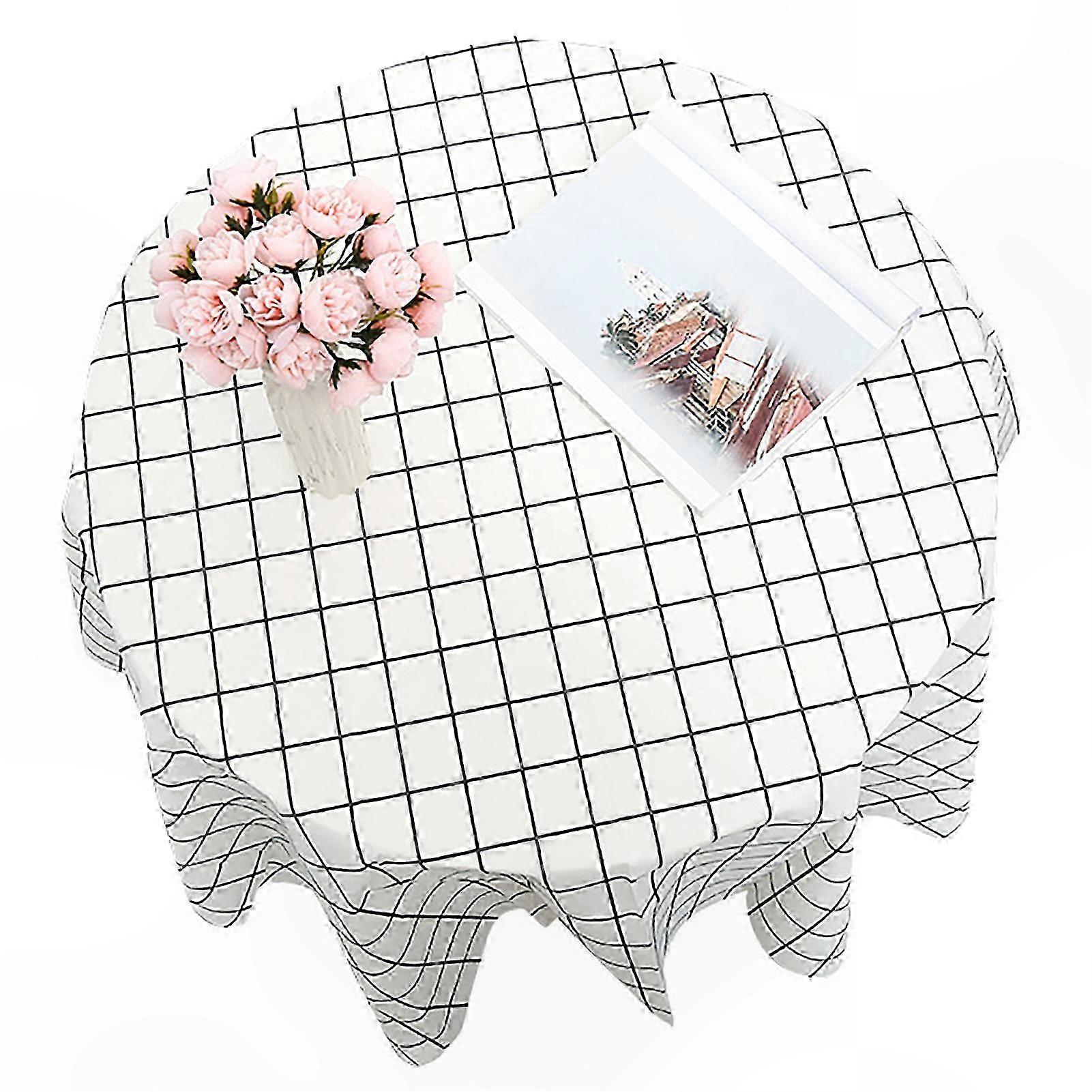 Waterproof Oil-Resistant Tablecloth, Minimalist Design, White Plaid Pattern, Thickened Fabric for Home Dining Room Decor (137x)