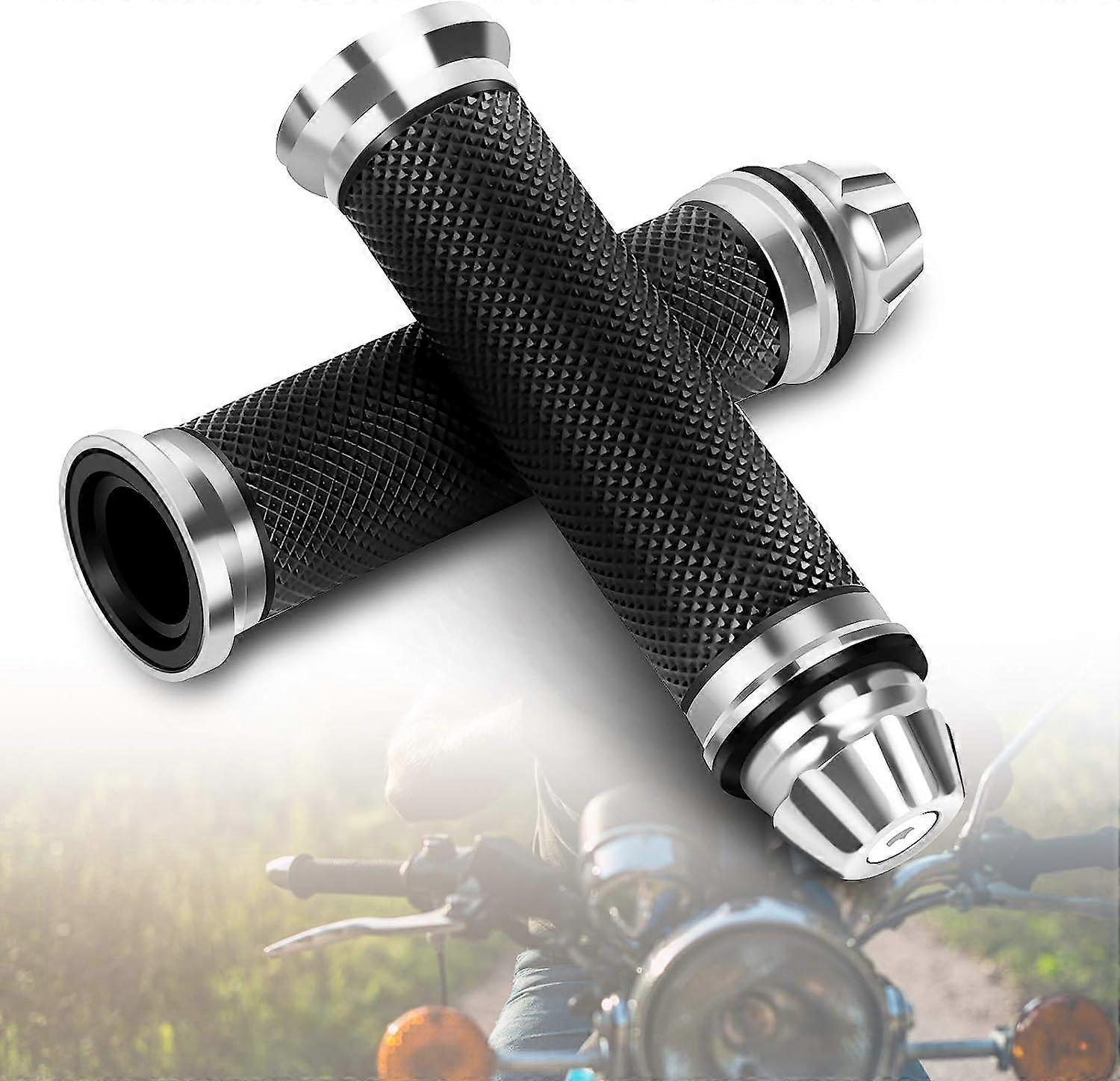 Motorcycle Handlebar Grips, Rubber Hand Grips with Aluminum Bar End, Universal for 7/8"(22mm) Handle Bar(Silver)2Pcs