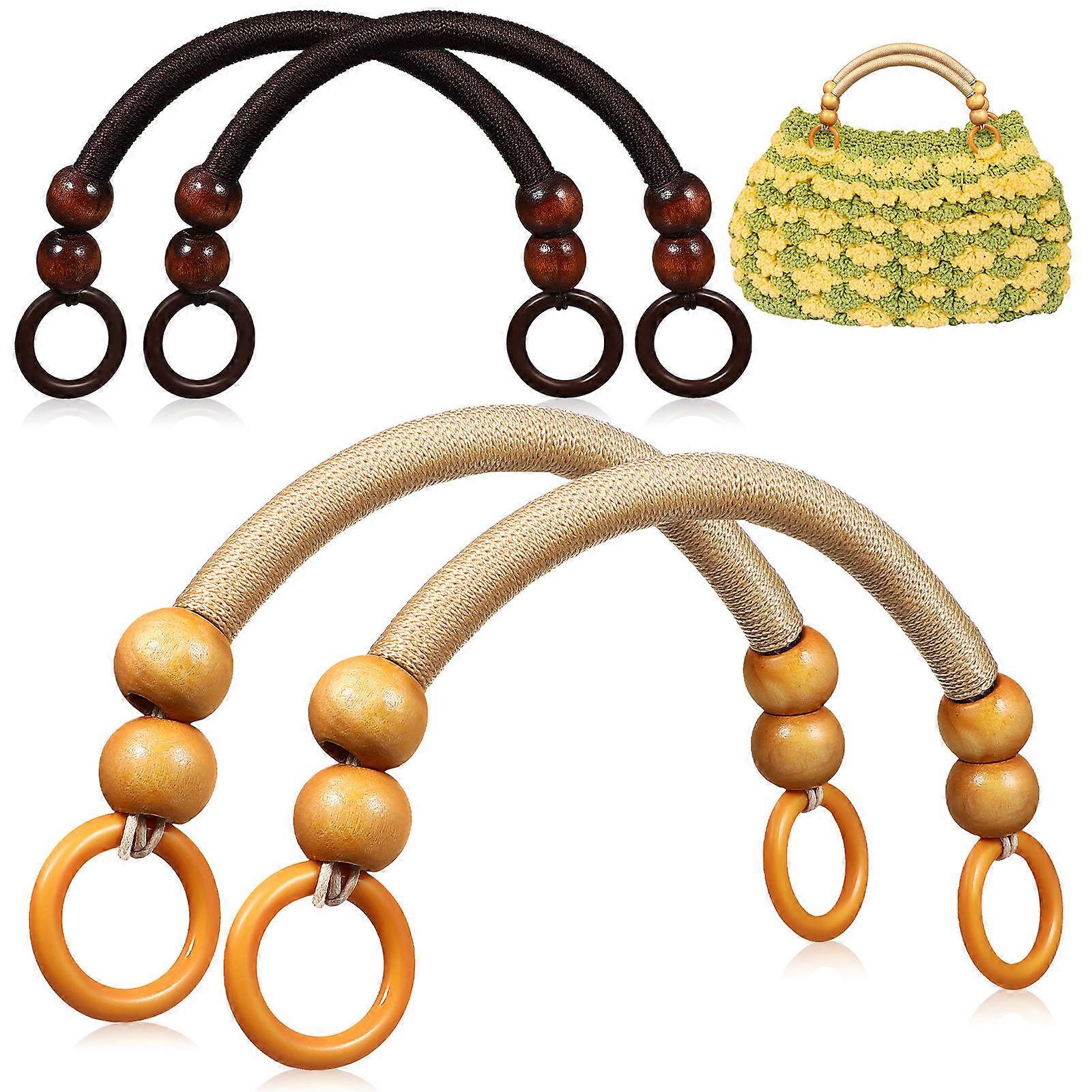Wooden Beaded Replacement Bag Handles Woven Nylon Purse Straps for Handbags Elegant U Shape Design Diy Crafting