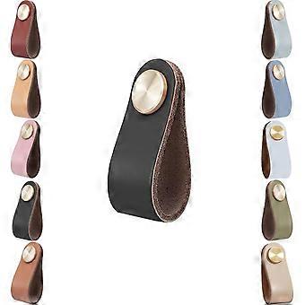 Leather Cabinet Handles, 2 Drawer Door Pulls, Anti-collision Retro Furniture Door Handles for Kitchen Dresser (Black)