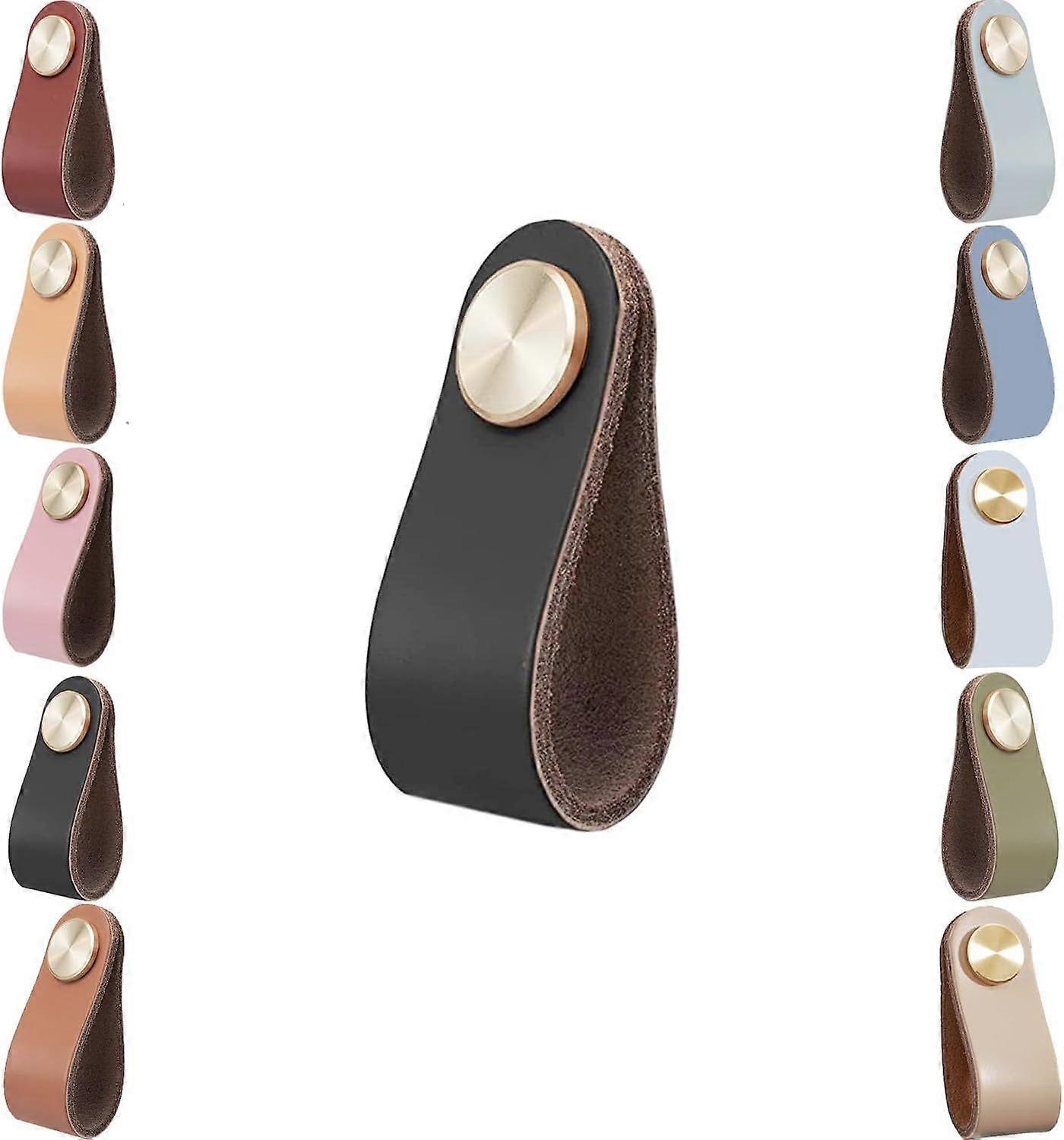 Leather Cabinet Handles, 2 Drawer Door Pulls, Anti-collision Retro Furniture Door Handles for Kitchen Dresser (Black)