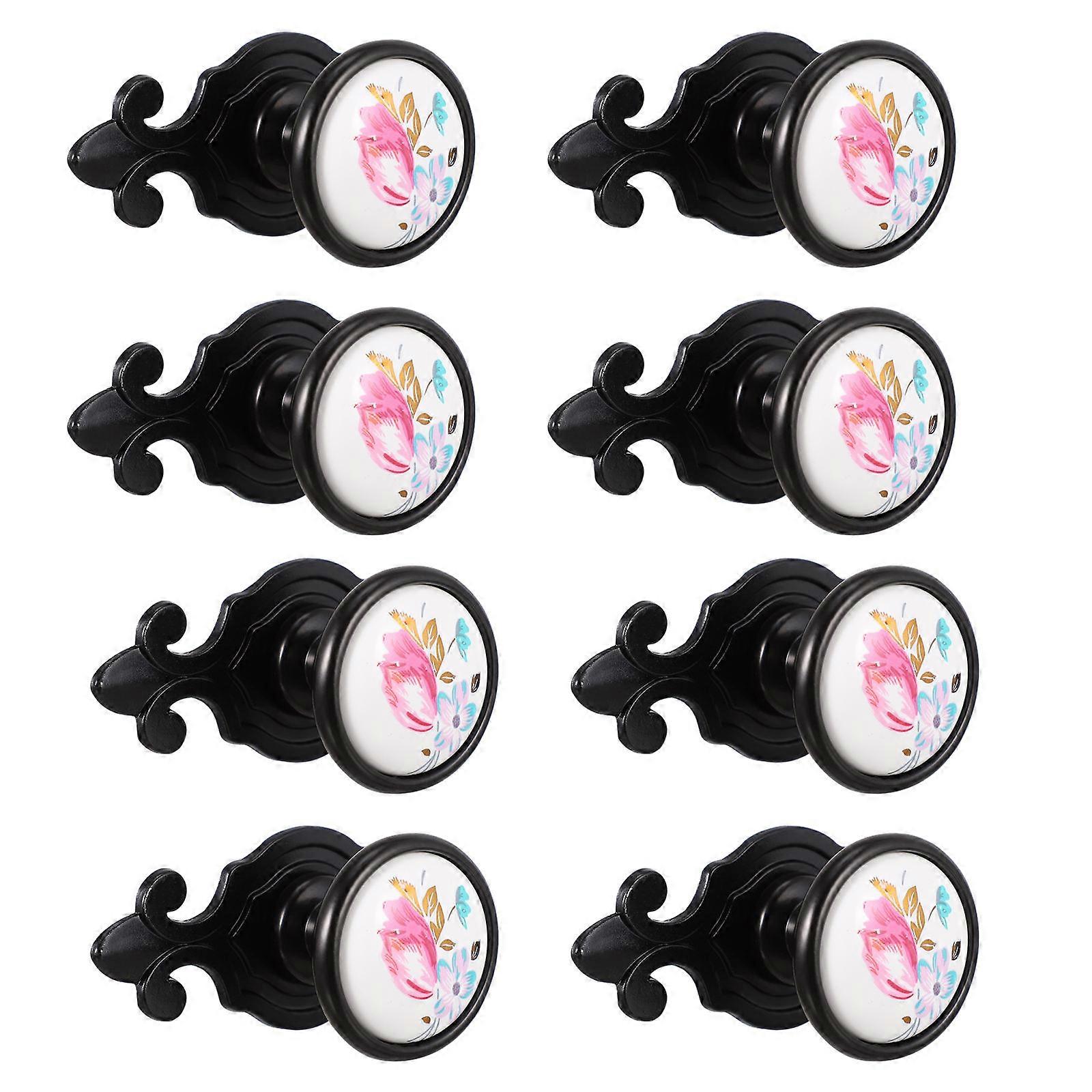 Ceramic Cabinet Knobs 8Pcs Simple Antique Door Handle Ideal For Home Decoration And Hotel Use Black Color Durable
