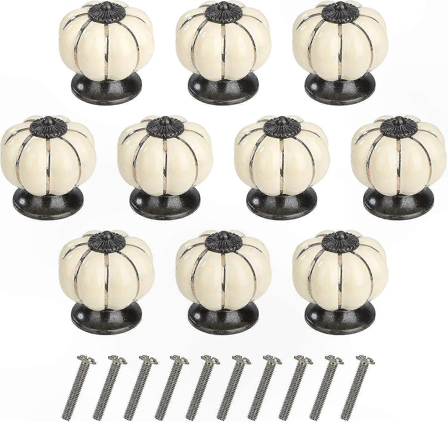 Ceramic Pumpkin Drawer Knobs with Alloy Screws for Kitchen Cabinets and Cupboards, 10 Pieces (Ivory)