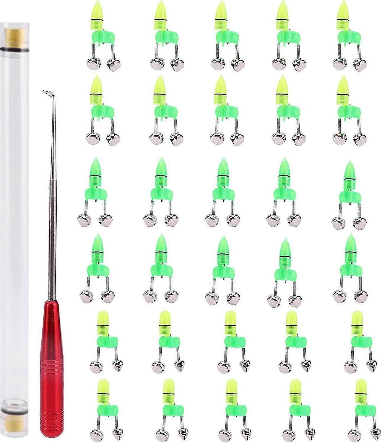 Fishing Bells Clips, 30pcs Led Night Light Fishing Rod Alarm With 1pcs Fishing Bell Hook Remover Set, Dual Bells Fishing Rod Bait Fishing Indicator(gl