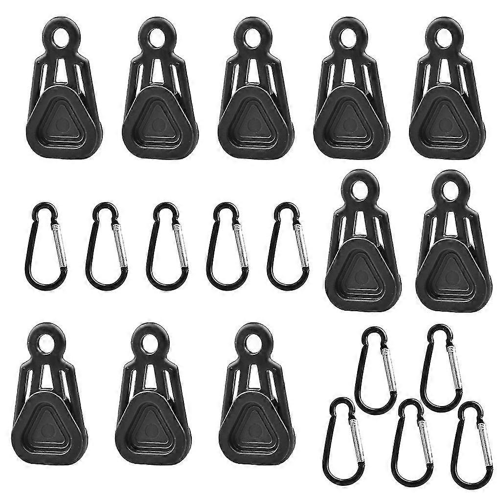 Features: Improved lace-down design: our tent clips feature an inner round closure and an outer ring, soap flute canvas clips make it more safer and stable to prevent tarpaulin from falling out. No need to create holes in the tarpaulin, simple to remove after use, leaving just a little wrinkle marks; Not suitable for thick fa-bric, better effect for light tarpaulin. Reliable quality: The tent trap clamp is made of premium and strong material, which is tear-resistant, waterproof, weather-resistant,durable and lightweight ; canvas clips can withstand low or hot temperatures, can bite into wet materials and ensure additional reliable holding effect . Multi-Function Pressure Clamps: Clamp Clamps are for ideal for outdoor camping tents, tarpaulins, tarpaulins, awnings, awnings, caravans, boat covers, pool covers, temporary shelters or any fa-bric covering that requires additional support points, excellent for outdoor adventurers, campers and travelers Instructions for use: take the circular part on the cloth and the outer ring under the cloth, use the groove and the outer ring to hold the cloth in the middle, easy to install, can provide the optimal grip pressure control to hold the cloth firmly without tearing or damaging it; A hole is provided at the rear end of the tent clip, it can be attached to any standard rope, rope, hook or rope without having to cut any holes in the tarp or cover. Specifications: Color: black/green Material: plastic + aluminum alloy Clip size: 74x43mm/2.91"x1.69" Hook size: 47x22mm/1.85"x0.86" Note: Please allow 0-1cm error due to manual measurement. Make sure you do not mind before you bid. Due to the difference between different monitors, the picture may not reflect the actual color of the item. Thank you Package includes: 10xTent fixed for triangle clips + 10x hooks