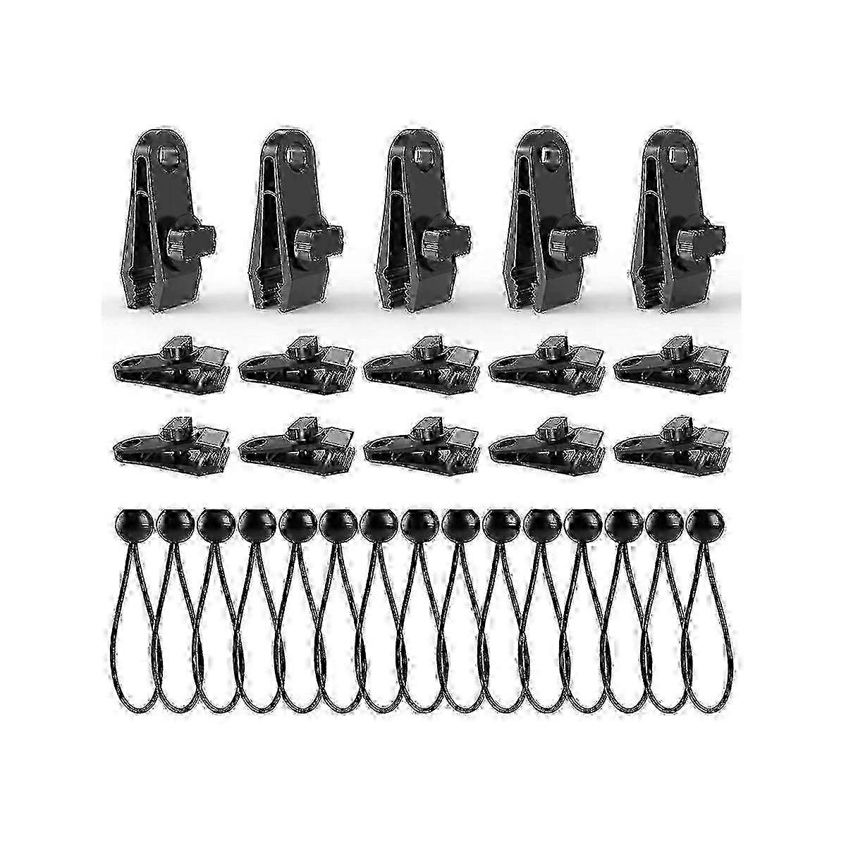 Tarp Clips with Bungee Balls 30 PCS,Tarp Clips Clamp Heavy Duty Lock Grip for Tarp,Pool Cover,RV Aw