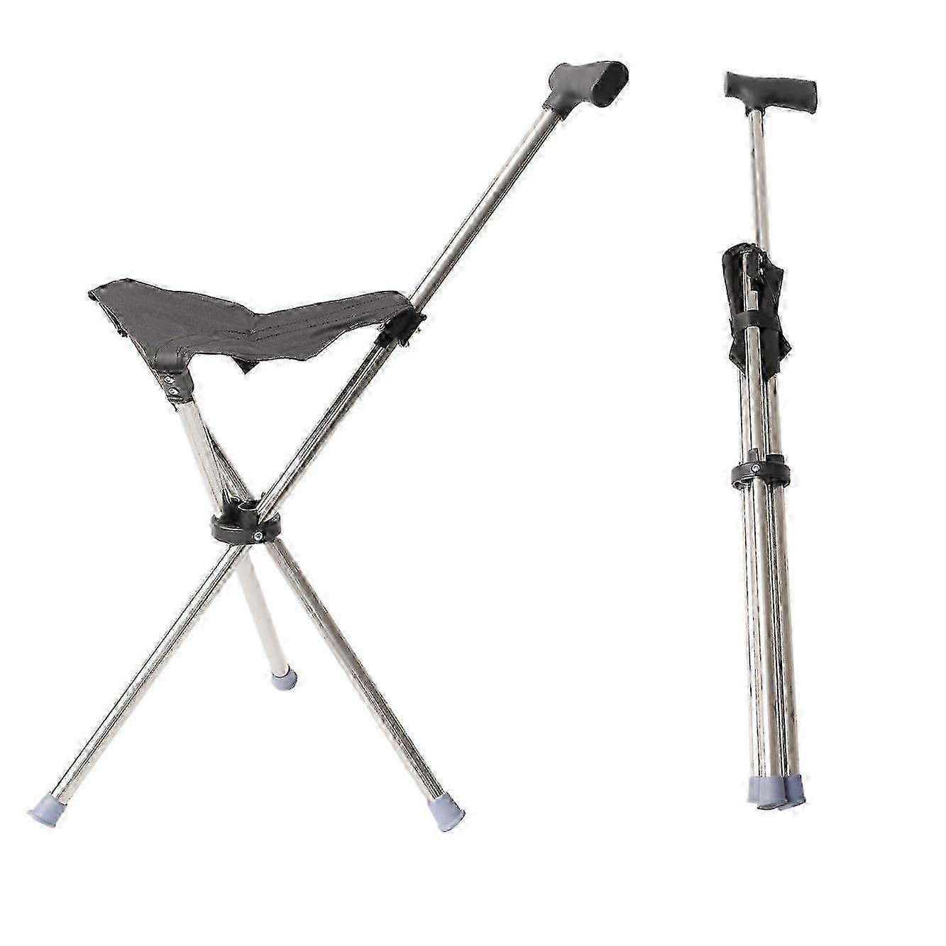 Travel Stools for Adults, Foldable Cane Chairs for Adults, Cane Seat Walking Stick Folding Seat 220 Lbs for Camping & Hiking, Black