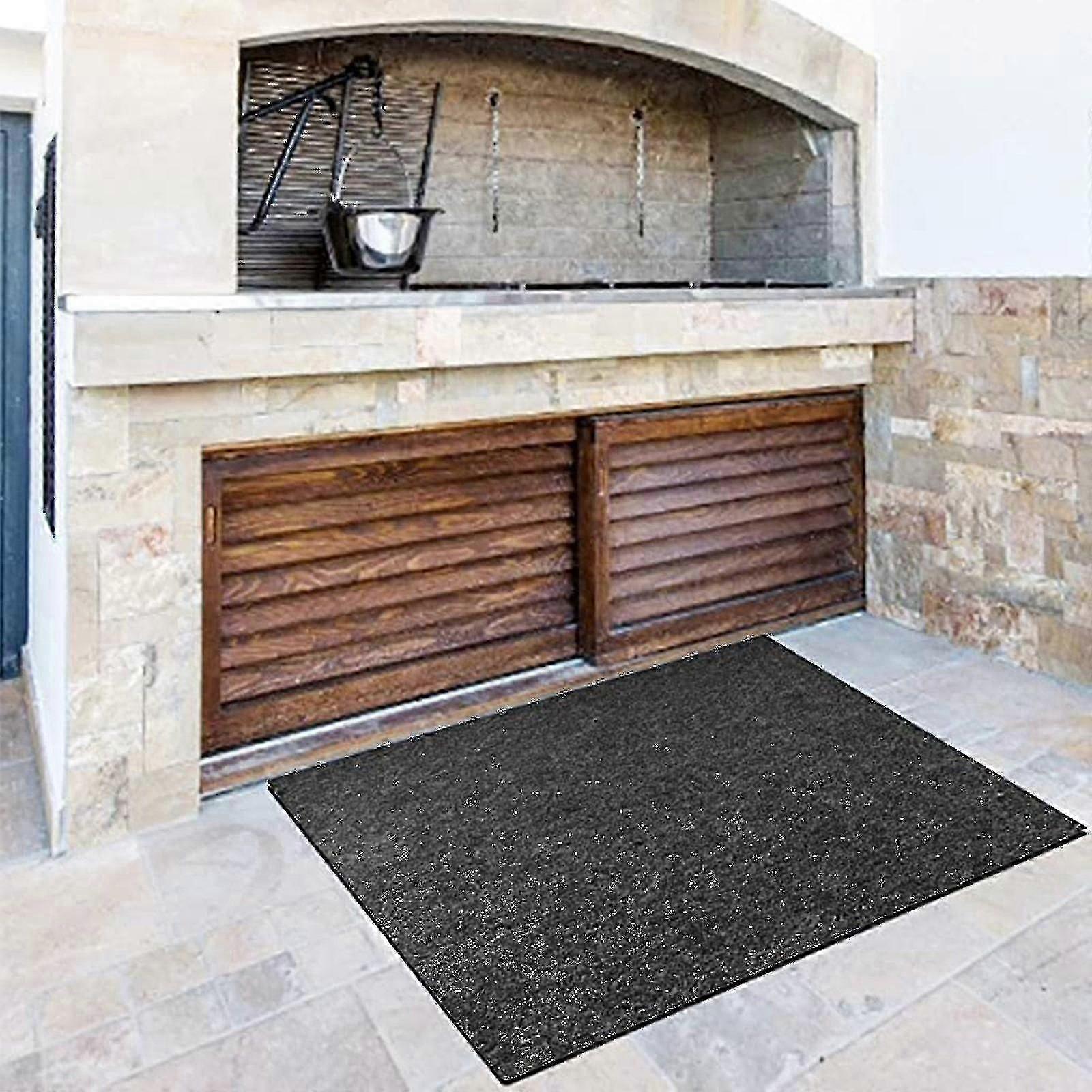 Made with 100% polyester non-woven fabric compound PUC, heavy duty hearth mat protects fine floors, prevents scorching and burns. Keep your hearth area looking new.Multi-layered flame retardant carpet that protects the floor from sparks, ambers, ashes or incandescent material coming from barbecues, heaters or chimneys.Roll up the hearth pad and shake it off in the yard or clean with a damp sponge. It also can be easily washed by hand or in the dishwasher.This non-skid backing keeps the mat in place and prevents it from moving around. The waterproof layer prevents liquid or grease from soaking through to damage the surface below.Designed to shield decks, patios, garage floors and other surfaces from damage caused by drips and spills around your outdoor grill.Material: PolyethyleneSize(LxW): 100 x 120cmPackage: 1 x Pad