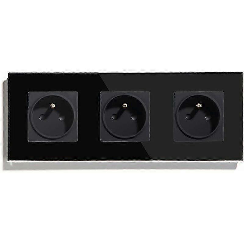 Waterproof Wall Socket Wall Outlet 16A Triple AC Power Outlets French Standard Crystal Glass Panel New Wall Outlet Black