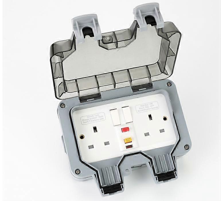 Outdoor Socket, Weatherproof Storm RCD Socket Double Switched 13 A IP66(1pcs, grey)