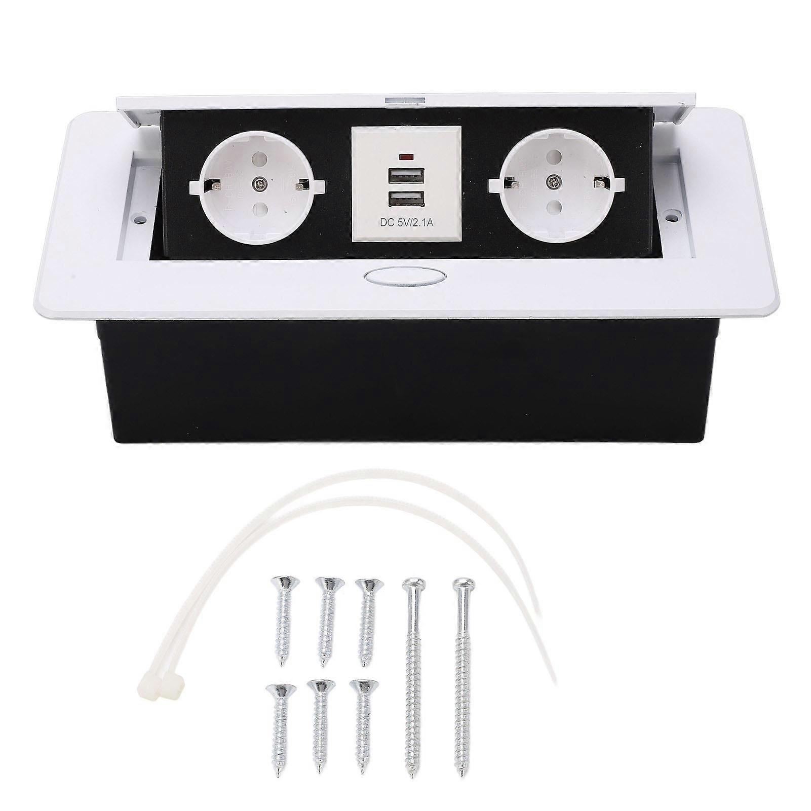 Embedded Panel Socket with Dual USB Ports Power Outlet Metal Desktop Receptacle EU Plug 250V