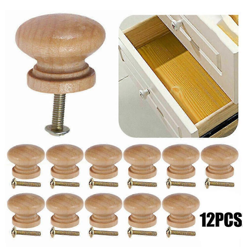 Wooden Knob Wardrobe Door Cabinet Drawer Pull Handle Knobs With Metal Screw(12 pcs, wood color)