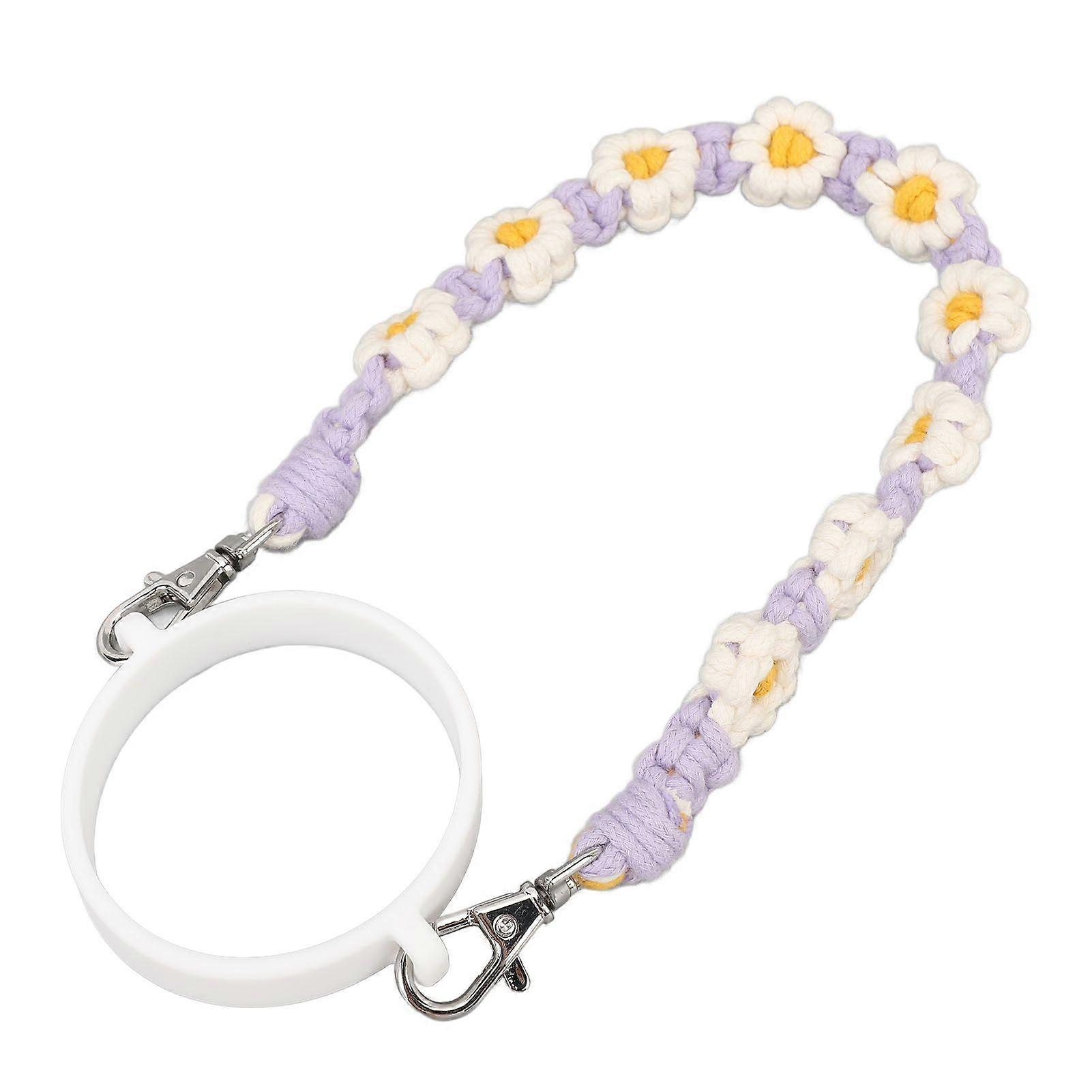 Water Bottle Handle Cute Flower Silicone Loop Hand Woven Water Bottle Lanyard Water Cup Rope for Outdoor Travel Camping Purple