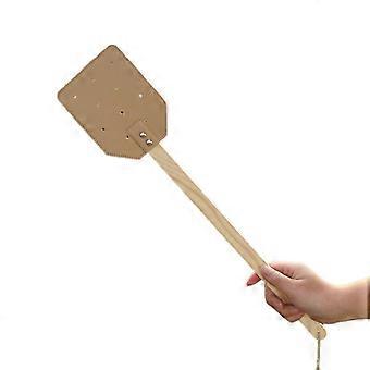 Yellow Wooden Stick Handle Mosquito Swatter Manual Fly Swatter PU Leather Mosquito Swatter