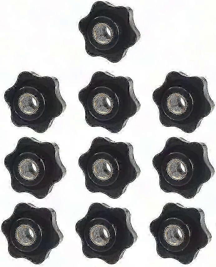 Package includes: 10 pieces of M6 threaded clamping knobs. The diameter of the star head is 32mm and the diameter of the screw is 6mm. The star handle is ideal for manual adjustment in mechanical engineering.**Easy to Use** The knob features a screw-in design for easy installation, with a good surface finish and comfortable grip. It allows for easy operation and can serve as a reliable replacement for broken knobs.**Material** Made of high-quality plastic and copper, the knob is durable and built to last. The black plastic hand knob with star handle design is suitable for use with machine tools.**Features** Ergonomically designed for a secure, non-slip grip that wont scratch your hands. These knobs are excellent replacements for old or damaged handles.**Application** Ideal for use on lathes, mechanical equipment, instruments, and industrial machinery. Perfect for securely fastening control panels to components and machines.**Color:** Black **Product Includes:** 10x Threaded clamping knobs