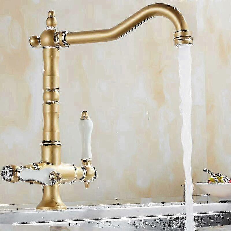 Single Handle Dual Control Kitchen Faucet Aged Brass 360掳 Swivel Vintage Style for Sink with Flexible Water Lines