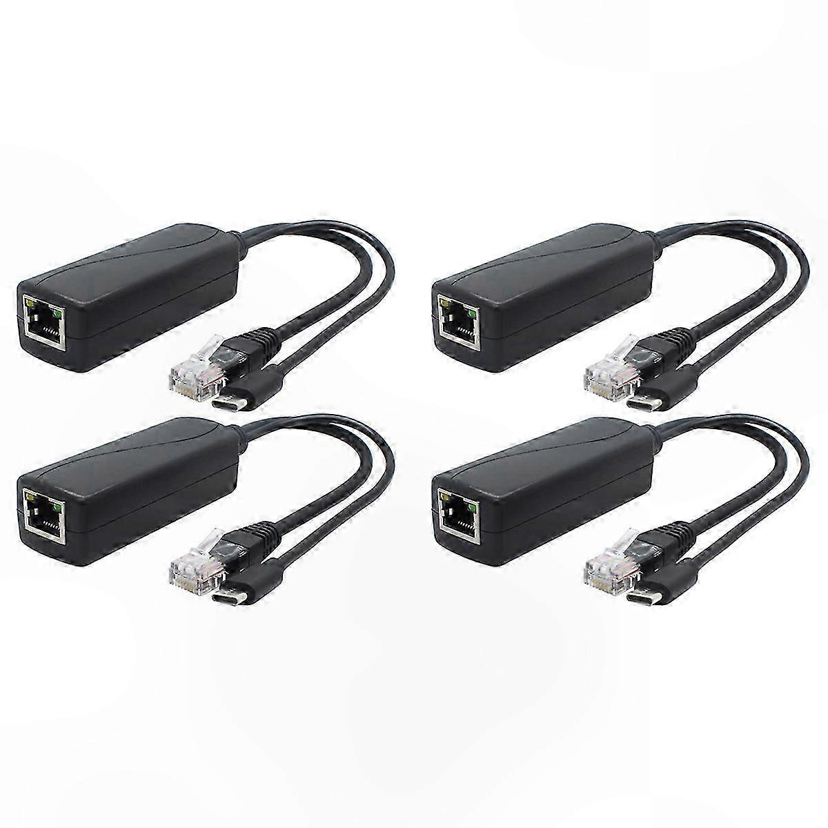4-Port USB-C PoE Splitter, 5V 2.4A Output, IEEE 802.3af Standard, Converts 48V to 5V for Networking Devices