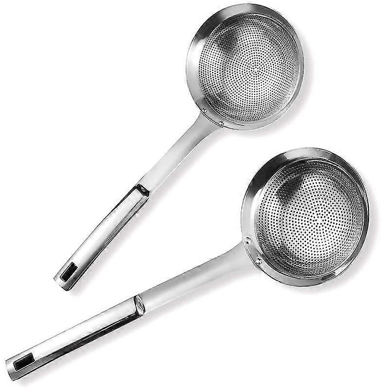 Set of 2 skimmer slotted spoon - It is not only a kitchen tool, but also a perfect artwork. It can help you easily complete any kitchen work.Easy to use - high temperature resistance, long handle to ensure safe hands. The handle is insulated and comfortable to use. The product has built-in rings to hang them up for ease of use and free up more space in the kitchen cabinets and drawers.Strong Skim - Solid filter screen design, use thick structure, stronger than other skimmer. Great gift idea for anyone who enjoys top quality kitchen utensils.These make a fine birthday gift, or holiday gift.Rich functions-suitable for French fries,fish, pasta, vegetables, meat, wontons, jam, tea,etc.Filtering soy milk and food scum,removing grease and foam from hot pot and can also fishing.Suitable for home, kitchen, restaurant, hotel, bar.Safe and healthy - it will never rust or corrode, will not emit harmful substances,and is easy to clean.colour:SilverMaterial:stainless steelsize:large colander: 33 x 11cm, small colander: 17 x 9cmPackage Contents:1 x large colander1 x small colanderOnly the above package content, other products are not included.Note: Light and different displays may cause the color of the item in the picture a little different from the real thing. The measurement allowed error is +/- 1-3cm.