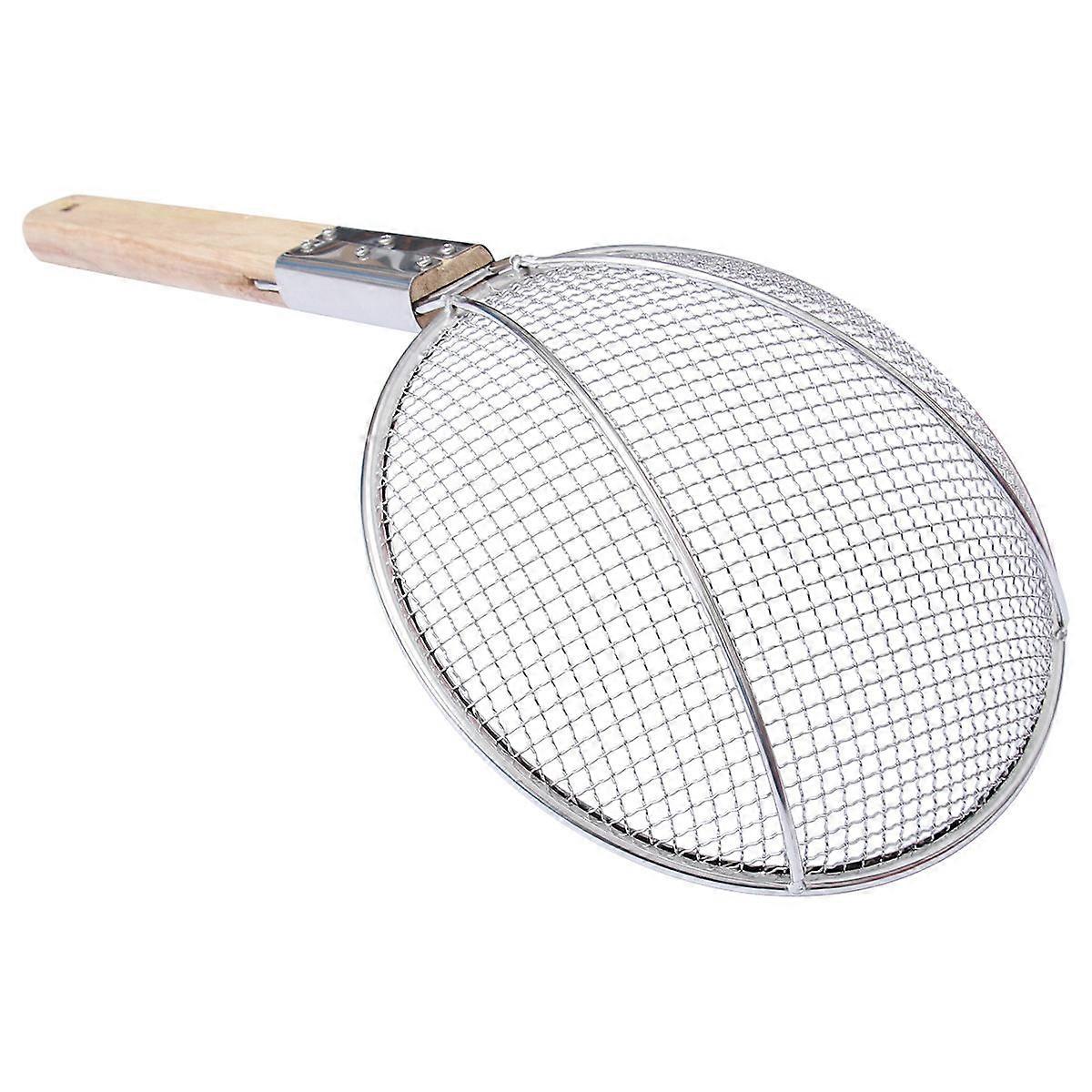 Stainless Steel Skimmer with Thick Wooden Handle for Straining Food at Home Diameter 24cm