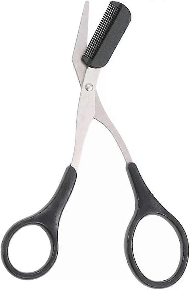 Eyebrow Scissors, 1 PCS Professional Eyebrow & Eyelash Trimmer Tool with Comb, Black+Silver, Stainless Steel & Plastic