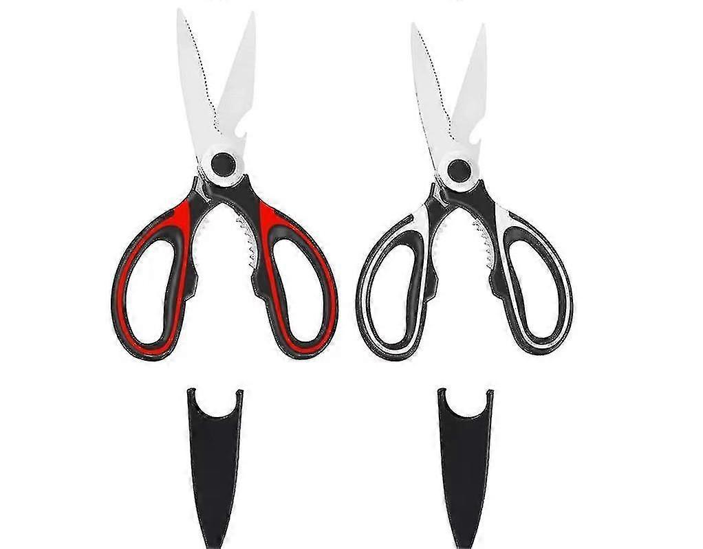Heavy Duty Kitchen ScissorsStainless Steel Sharp Scissors for Kitchen Shears Scissors with Cover Sharp Cooking Scissors Suitable for NutChicken1.This Heavy Duty Scissors forged from top premium grade stainless steel that is rust- resistance and corrosion resistance,ultra sharp blades,light and effortless while easily outperforming all other shears2.Handles are easy to grip and hold, the plastic blade guard can protect the blades from damage and avoid hurting your hand3.Adapt to a large number of kitchen work, cut meat, turkey, cut poultry bone, You can also use it to scrape scale fish, cut all kinds of vegetables, fruit, cut noodles and even pizza. Do not need chopping boards and choppers, bring kitchen work more convenience4.The sharp blades deliver highly precise cuts with minimal effort. Our scissors are dishwasher safe and rust resistant, easy cleaning.Great as food Scissors, meat Scissors, cooking scissors, poultry scissors5.These kitchen scissors are dishwasher safe and save much of the maintain time. And hand water wash is also recommended and dry it immediately after washing it.Color: black and white + black redSize: length 20.5CMDelivery Quantity: 1 PieceWarm prompt:1.As different measuring methods,it will occur 1-3 cm deviation about the items,please ensure that it is okay for you before ordering.2. Because of different monitors and lamplight, the picture may not reflect the actual color of the item, really thank you for your kind understanding3. Only the above package contents, excluding other products.