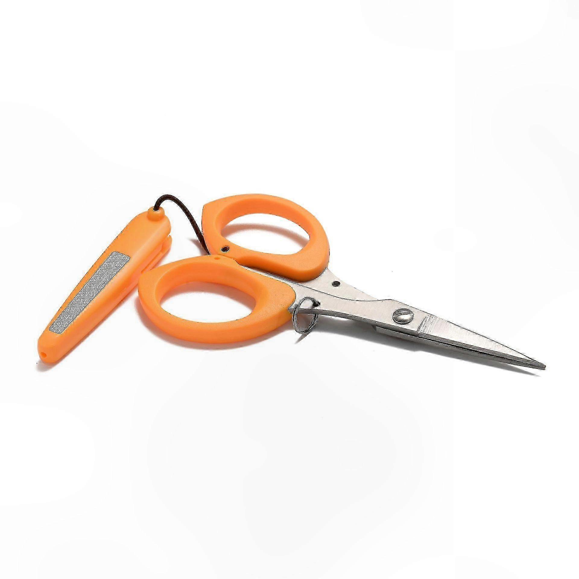 Stainless Steel Fishing Scissors with Serrated Edge, Precision Tips, Ergonomic Handle, Safety Cover & Lanyard