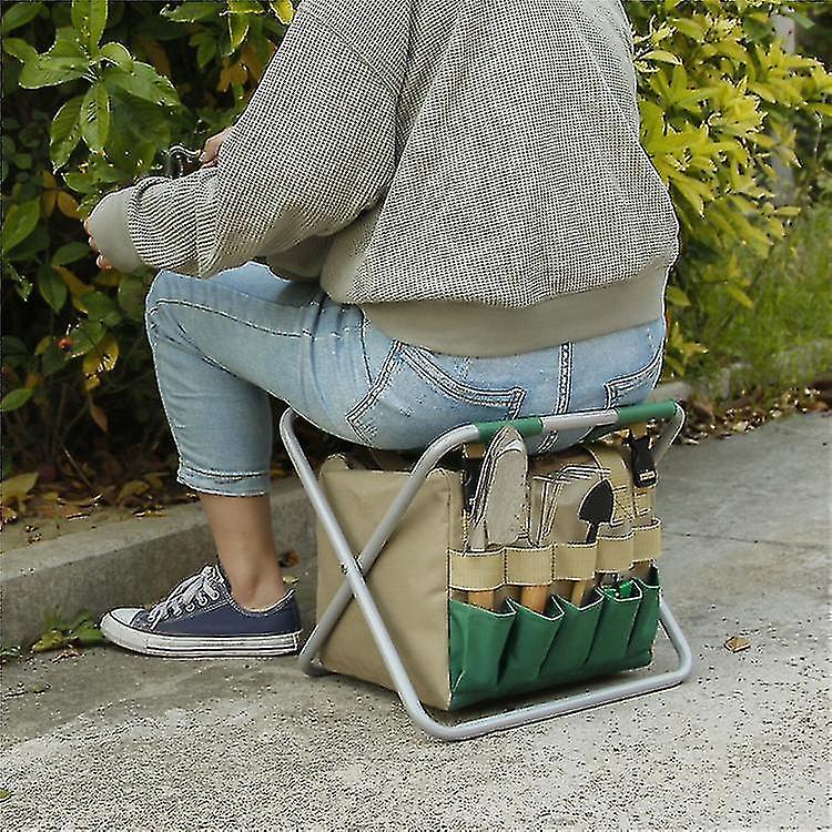 Garden Tool Stool, With 6 Diy Manual Multi-function Tool Sets, With Folding Chair Seat And Garden St