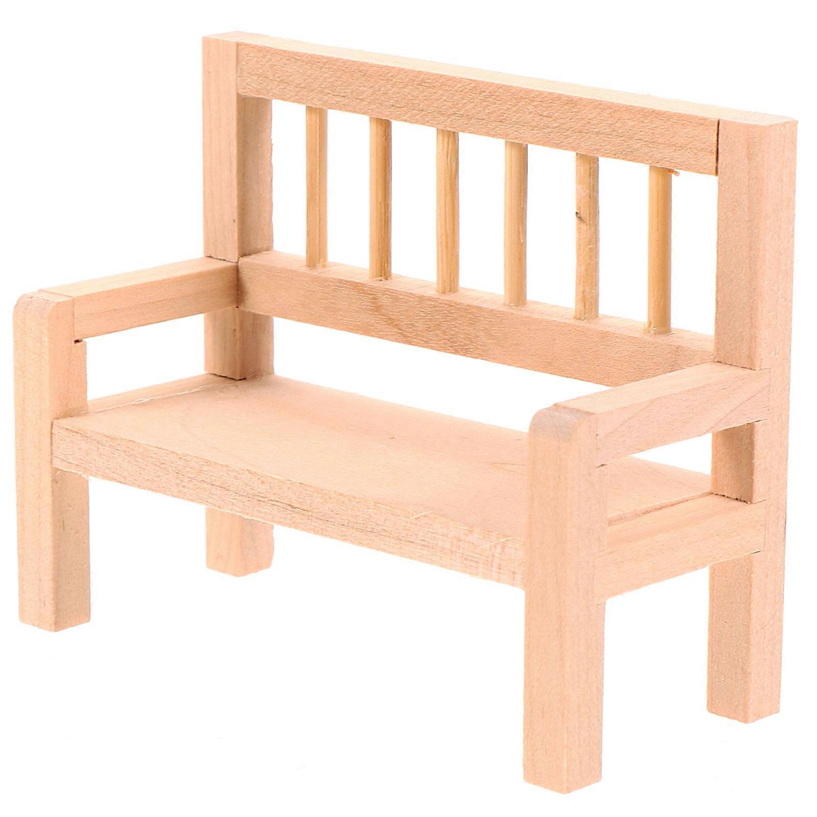 Miniature Wooden Bench for Dollhouse Furniture – Small Backrest Seat Accessory for Mini House Decoration, Delicate Craftsmanship, Safe Natural