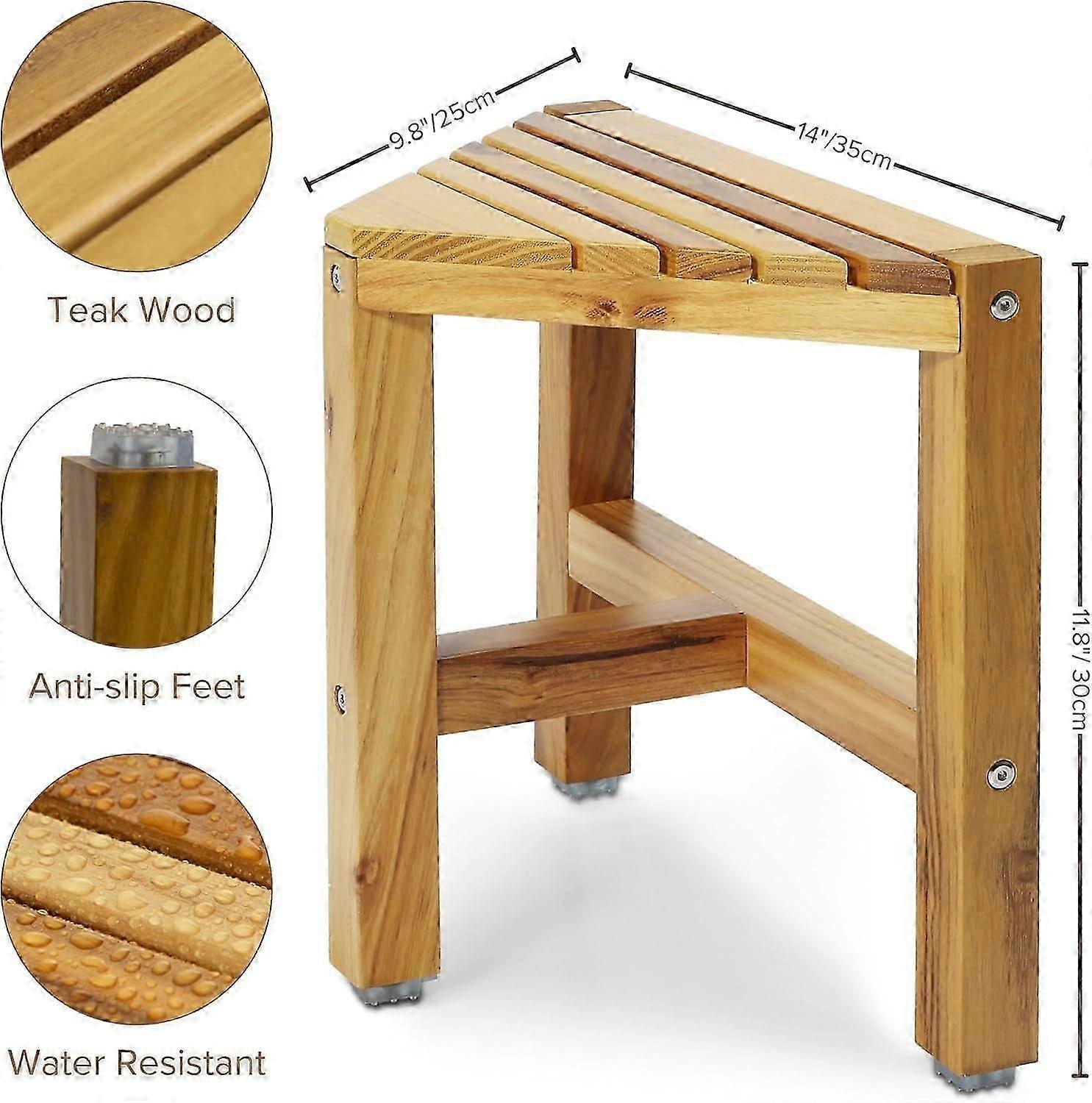 Teak Shower Stool Bench 12 Inch Non-Slip Shower Foot Rest for Shaving Legs Waterproof Design Durable Wood
