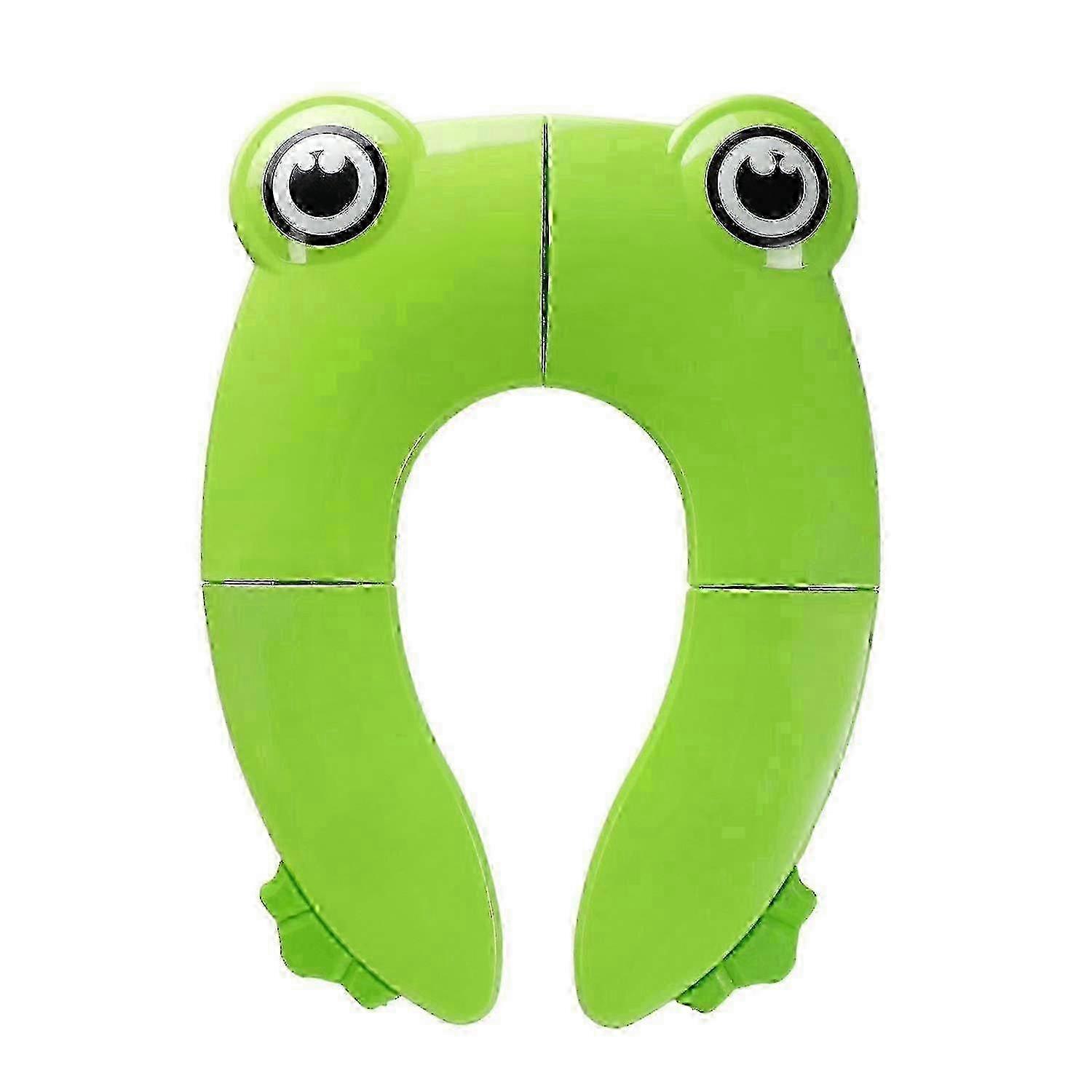 Reasonable Design for Safety Four large non-slip silicone pads and two non-slip clips on the back. This is a reasonable design to attach the toilet seat and potty trainer, and not only prevent your babies from falling into the toilet prevent children too from direct contact with the public toilet. Foldable and amp Portable The toilet seat can be easily folded and unfolded. It is lightweight and has a compact size of 19 cm x 13 cm x 5 cm. It also comes with a storage bag! Unfolded size (D x H): 36.5 cm x 26 cm FURTHER USE Suitable for home and travel, fits most standard toilet seats, avoids direct contact with public toilets and effectively prevents the spread of germs. Special Design for Children Specifically designed for children over 12 months and up to 60 pounds. It is made of safe, non-toxic and odorless PP material, which is environmentally friendly and safe for your baby's health. And smooth edges for a good user experience. Cute cartoon pattern With cheerful colors and a cute frog print, the foldable potty seat is fun for your children. Your children can go to the toilet themselves, they become more independent, ideal for potty training.