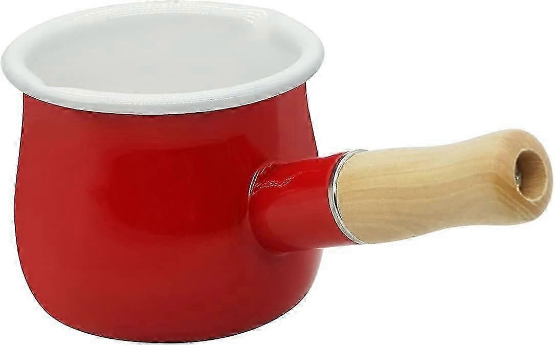 Non-Stick Milk Pan, Tea Coffee Egg Boiling Pot ,Enamel Wooden Handle Baby Food Supplement Pot, Easy Clean Enamel Stockpot (Red)