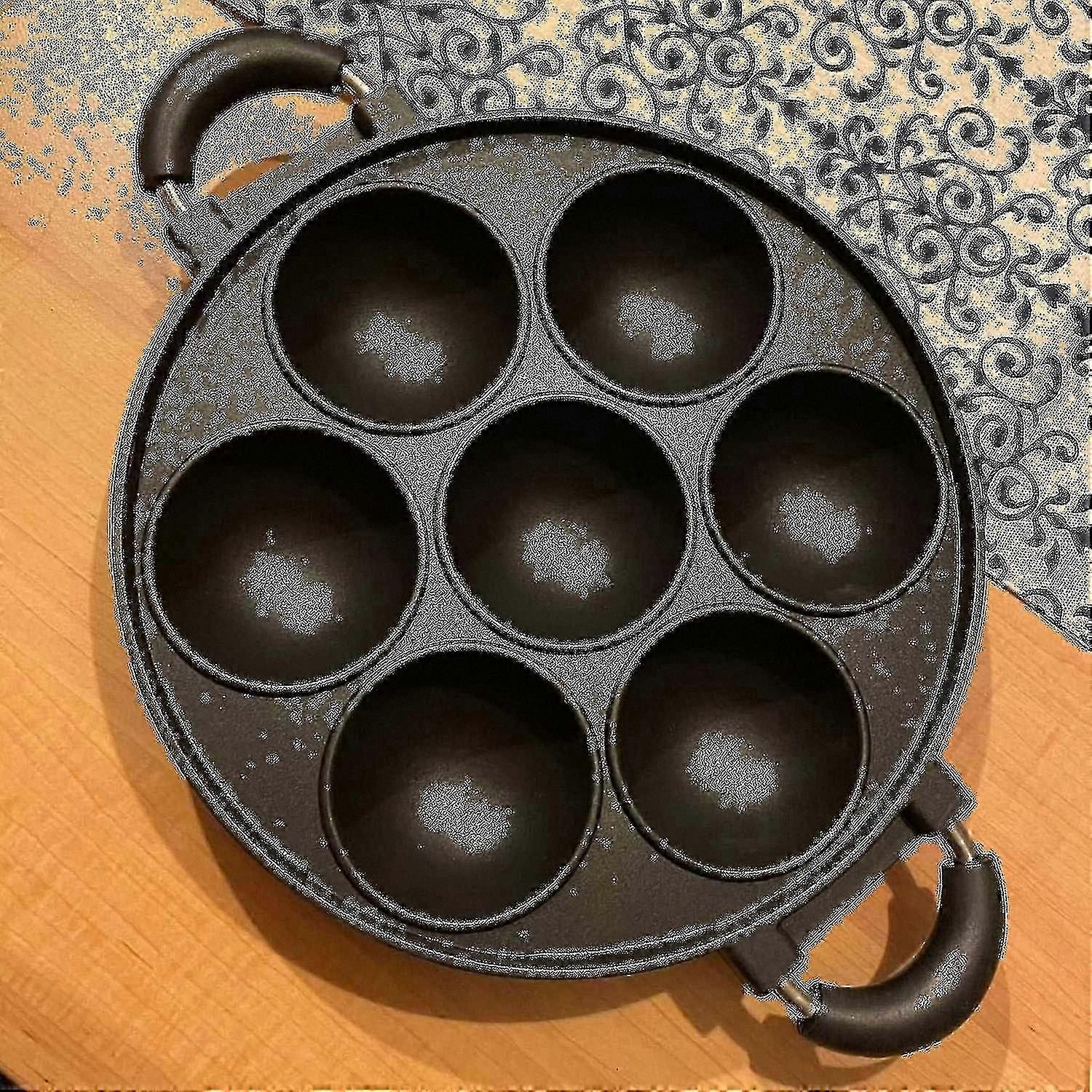 Non-Stick Cast Iron Cooking Pan for Cakes and Omelettes, 7-Hole Breakfast Egg Cooker with Cake Mold Design