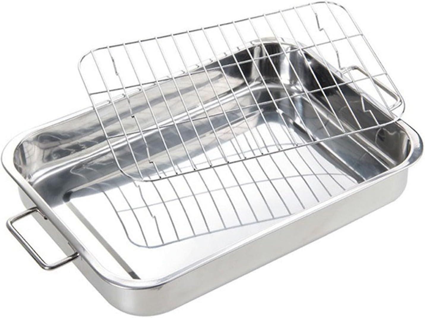 Stainless Steel Oven Pan with Rack Baking Roaster Tin Tray Kitchen Cookware Roaster - q36