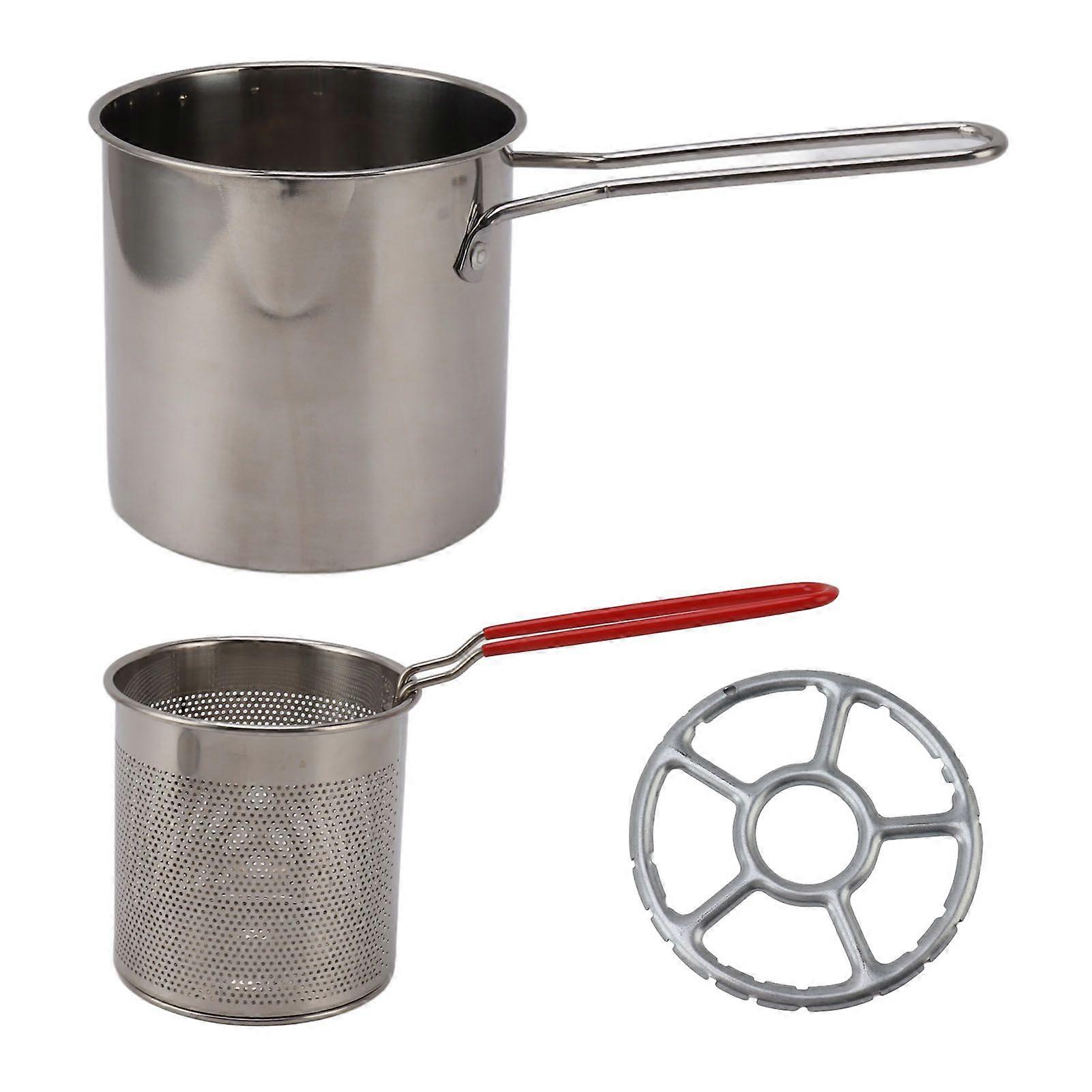 Stainless Steel Fryer Pan High Temperature Resistant Oil Saving Portable Mini Metal Fryer Pan with Long Handle 3 Piece Set with Rack