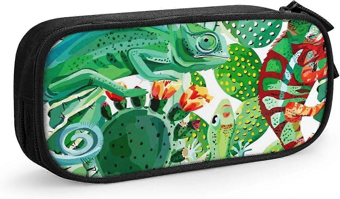 Pencil Case Chameleon Cactus Flower, Big Capacity Large Pouch Pen Holder School Supplies Stationery Storage Organizer for Office Student Girls Boys137