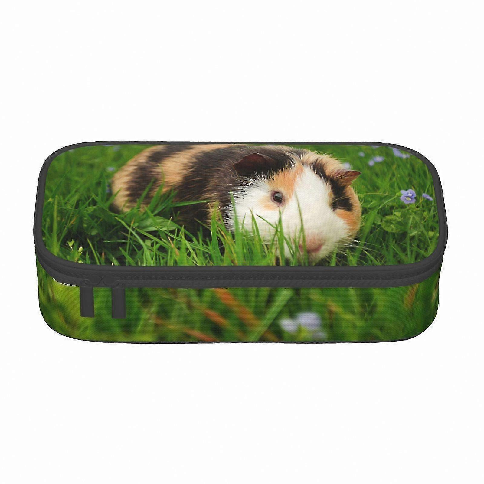 Large Capacity Pencil Case with Guinea Pig Design, Zippered Stationery Organizer for School and Office Use